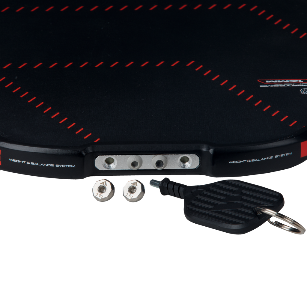 The METALBONE LP is an elite all-court paddle designed for versatility and premium performance. Its elongated shape, wider sweet spot, and extra power grip provide exceptional reach and stability. The 16mm thickness offers a balance of power and control, while the textured surface maximizes spin. Customize your game with the paddle's innovative adjustable weight system, allowing you to add weights to both the sides and top of the paddle. This added flexibility allows you to fine-tune its balance and feel to suit your individual playing style.