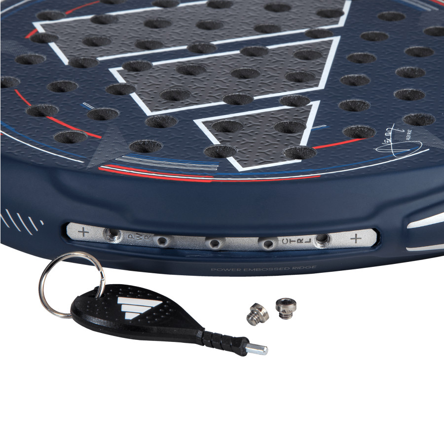 The PRO-EDT Adipower CTRL MTW by Álex Ruiz is a unique and exclusive model. It combines all Multiweight technologies and the highest quality materials to achieve excellence. To achieve maximum power, the Power Embossed Ridge and Dual Exoskeleton provide unparalleled rigidity, while the best effects come from the Spin Blade and Smart Holes Curve. The Weight & Balance System allows you to adjust the weight and balance of the racket to your liking, enabling you to find the perfect balance between power and control. The round shape of the racket offers you absolute control over the ball, allowing you to place it precisely in any corner of the court. The combination of 18K Carbon fibreand EVA High Memory rubber endows it with unbeatable rigidity, perfect for deploying an overwhelming attacking game.