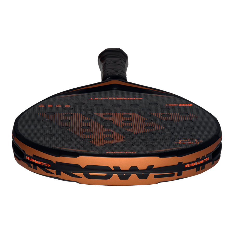 Confidence comes from control with the adidas Arrow Hit CTRL 2026. The Intelligent Balance System lets you instantly adjust weight and balance, tailoring the racket to your pace and strategy for precise play on every point. Its reinforced structure, combining ASC Carbon Fiber, Structural Reinforcement, and Muscle Power System, delivers a stable and responsive feel, increasing torsion resistance and keeping every shot clean and controlled. Power Groove adds structural rigidity and boosts shot power, while Extra Power Grip improves stroke acceleration. Soft Performance EVA provides comfort and consistent ball output, and Spin Blade Decal allows for enhanced spin control. The round shape gives better control on defensive shots, making this racket the perfect partner for advanced players seeking precision, power, and control from the first to the last point. This year we are introducing an exciting new product: the new adjustable rope cord with a padded wrist strap, which ensures maximum comfort on the wrist.